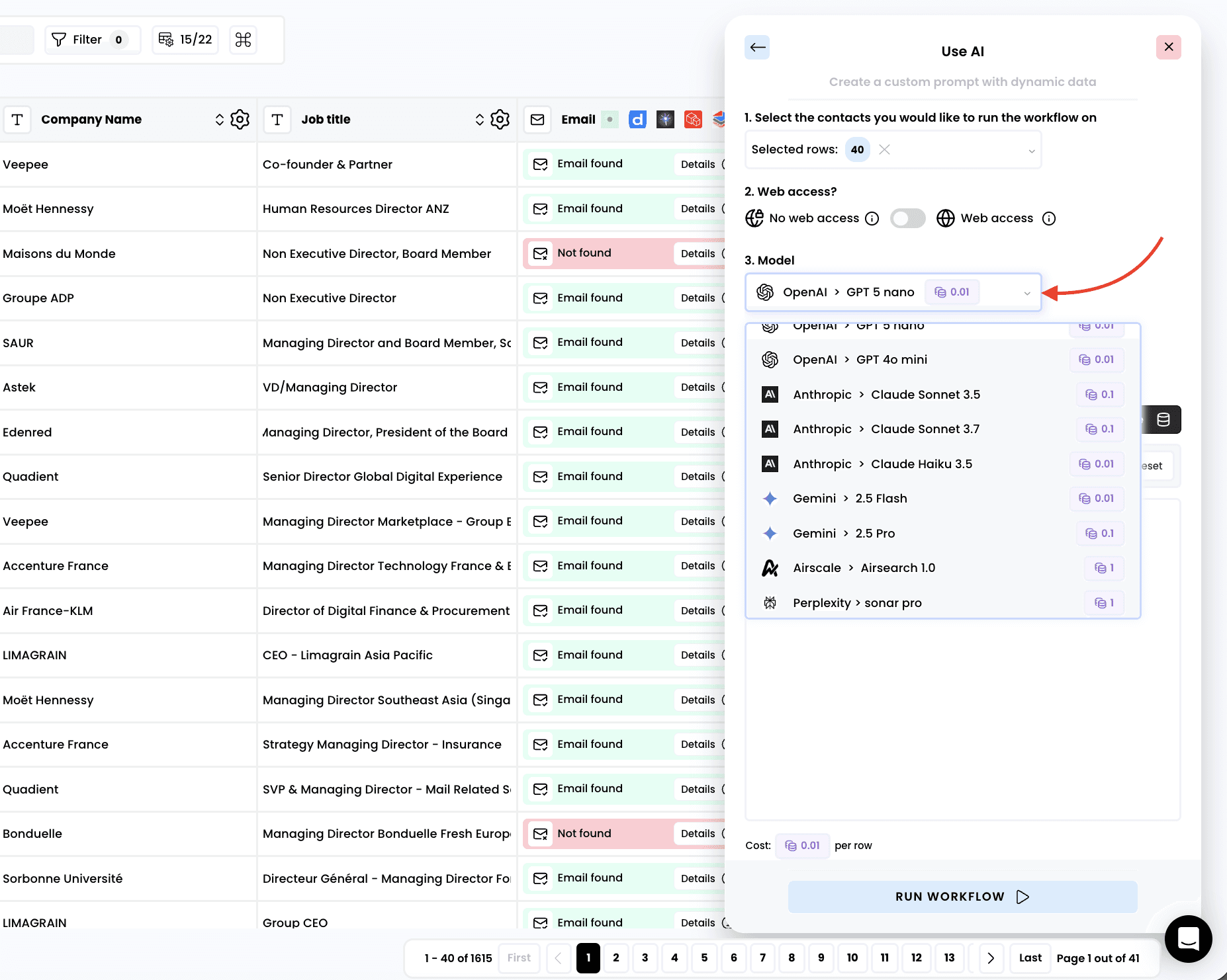 Use this mode if you want to find data on the web and want AI to have web browsing capabilities. Useful to research data online about a company or a prospect by visiting website pagesThis mode will select Airsearch 1.0 as the LLM to use