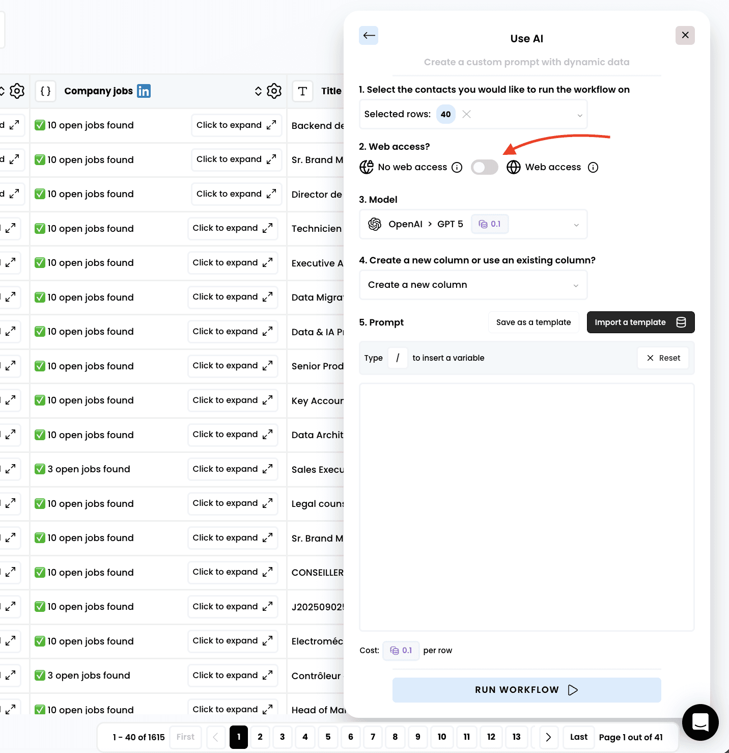 Best to edit / format or clean your data. Use this mode when your prompt only need data already existing in your table and don't need to browse the web to provide the expected outputWeb access: