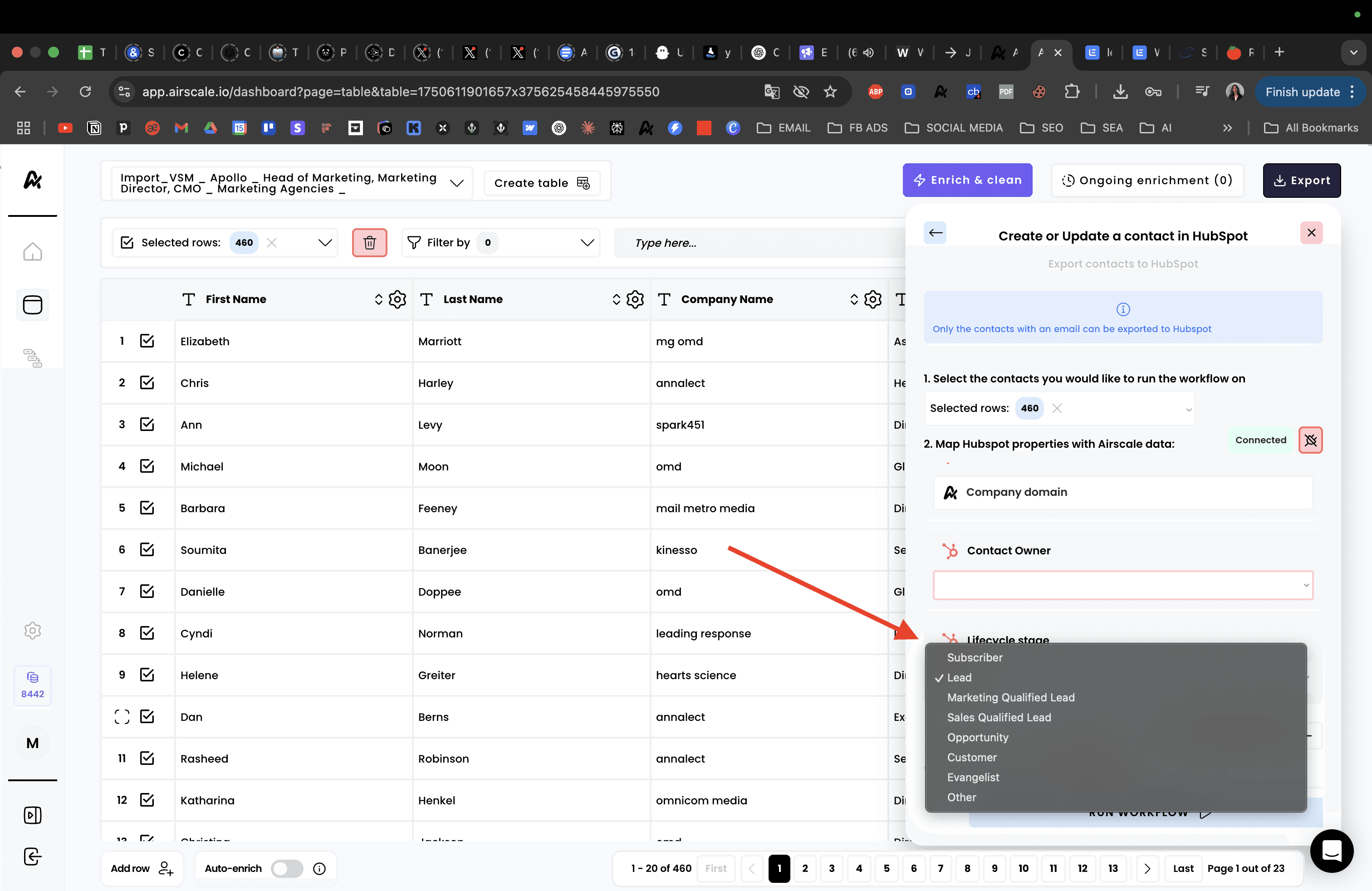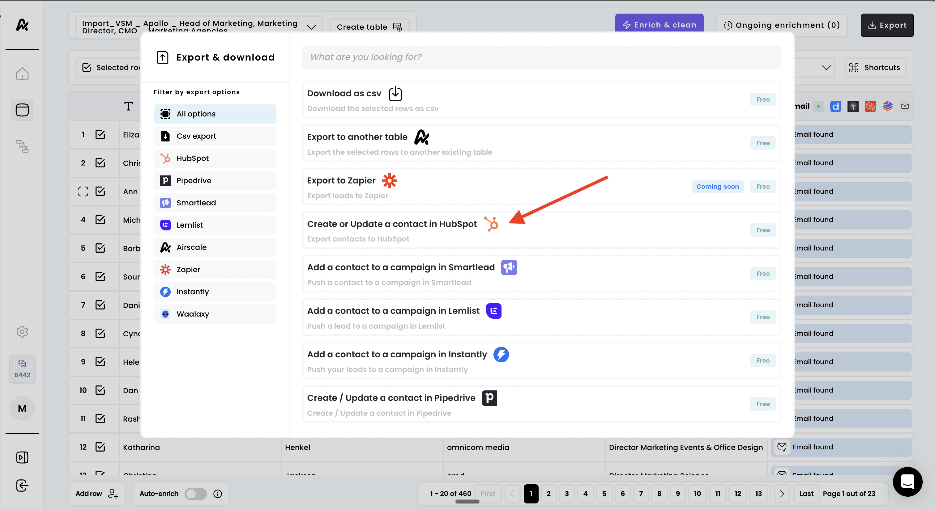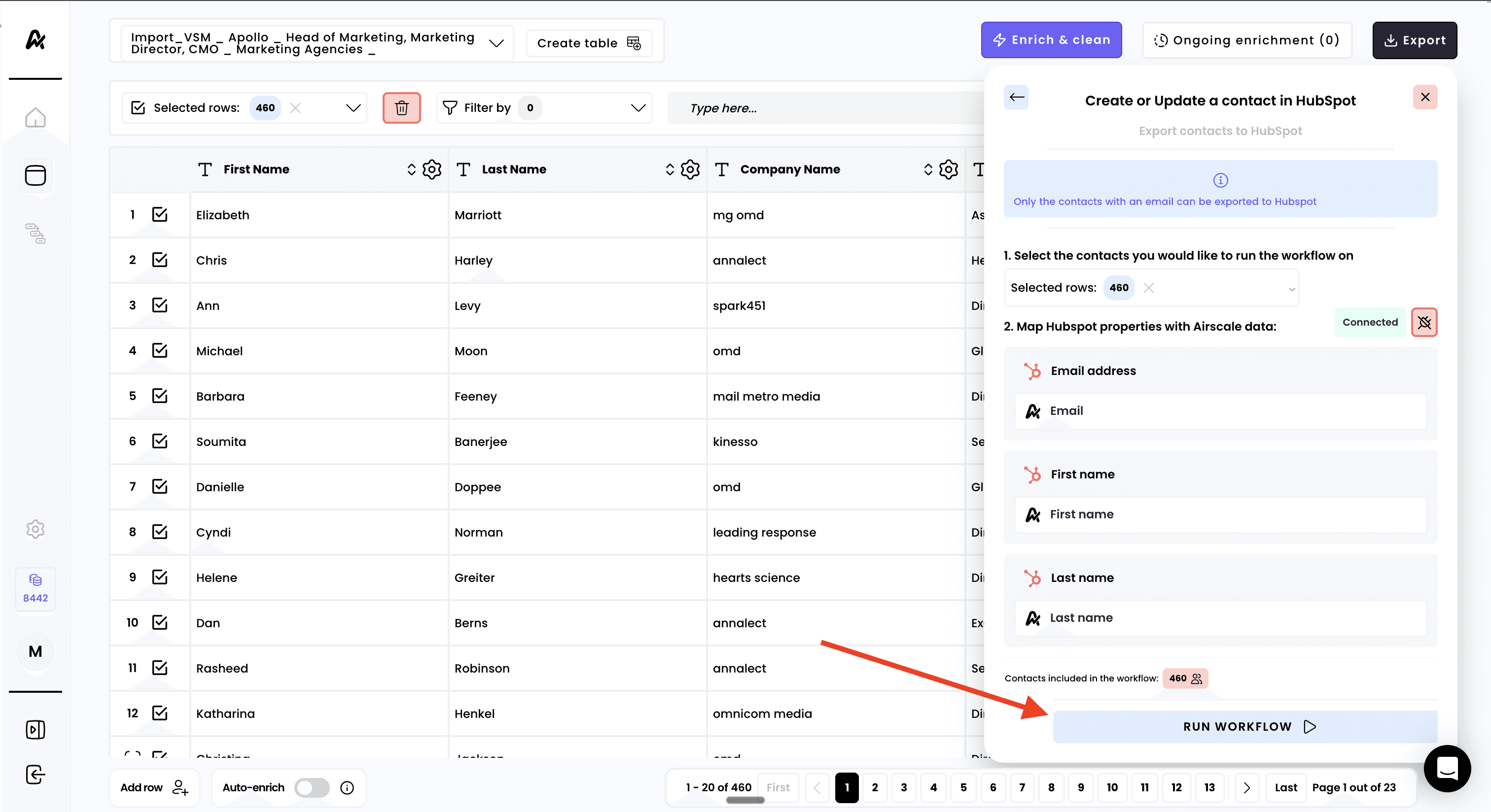 Export your prospects directly from Airscale to HubSpot CRM to streamline your sales pipeline. This integration pushes enriched prospect data directly into your HubSpot database, allowing you to manage leads, track interactions, and nurture prospects through your established sales processes