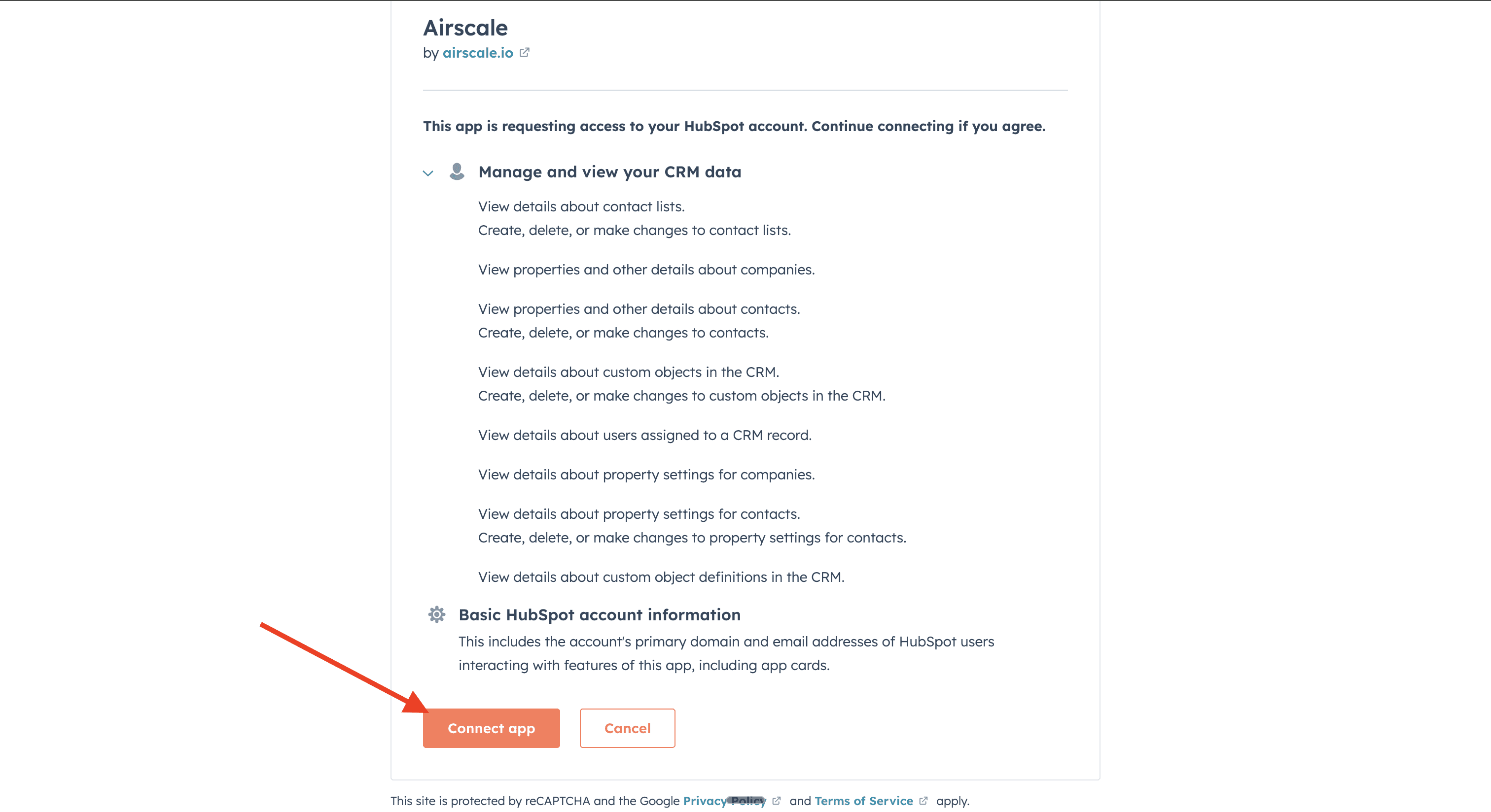 Grant permissions for Airscale to access your HubSpot CRM