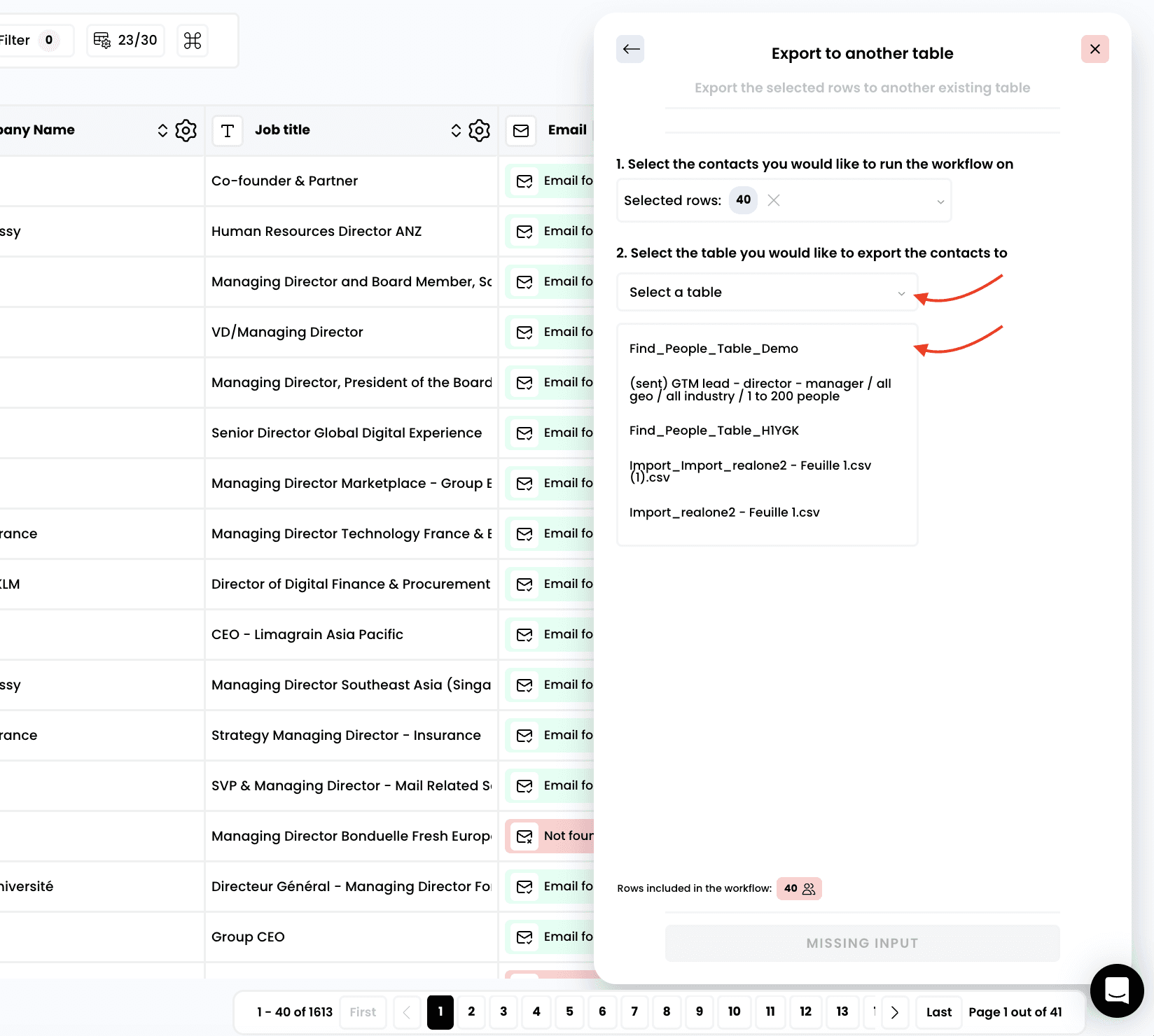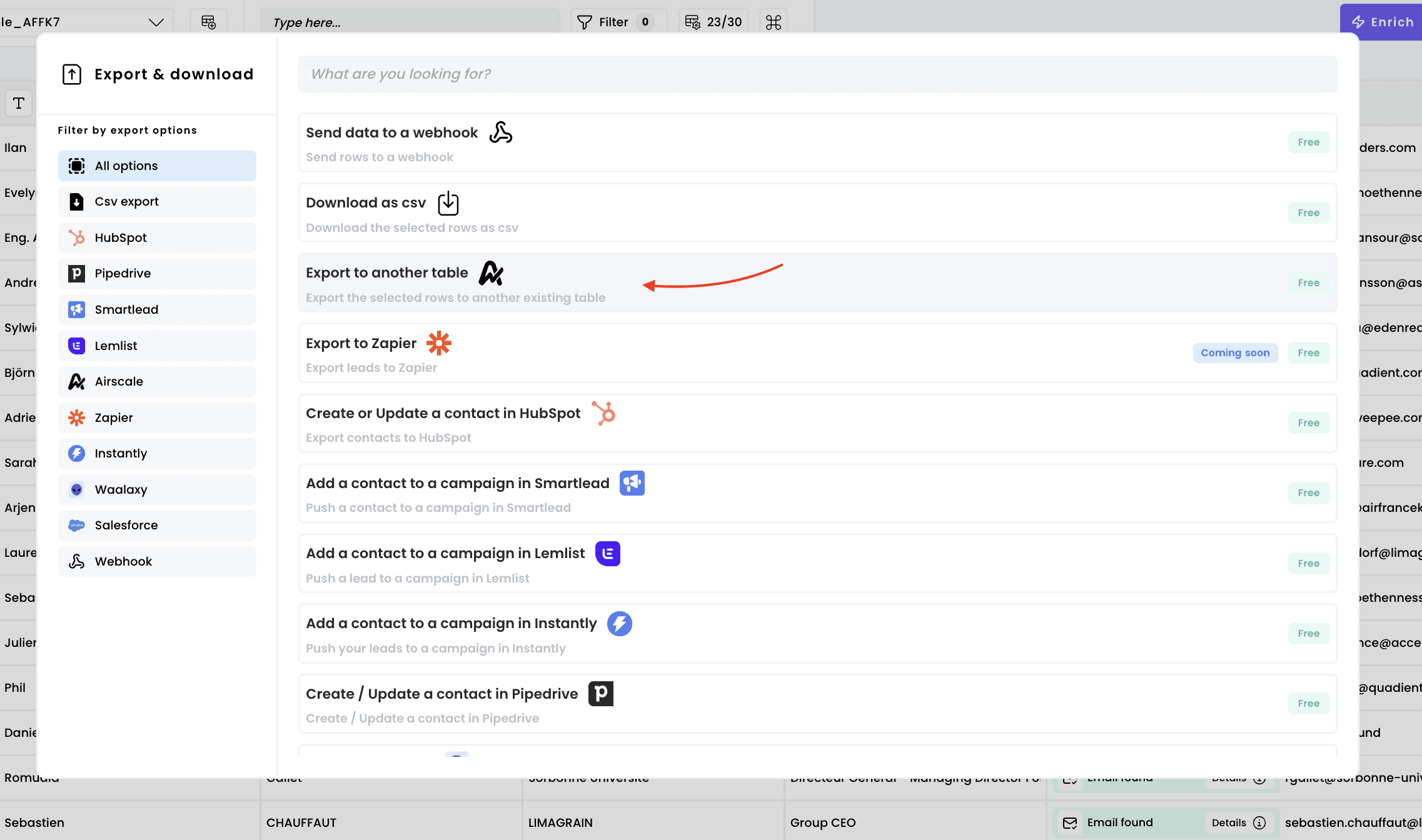 Move prospects between tables within Airscale to organize your data, create targeted segments, or consolidate lists from multiple sources. This feature helps you keep your prospect database clean and well-organized for different campaigns and initiatives