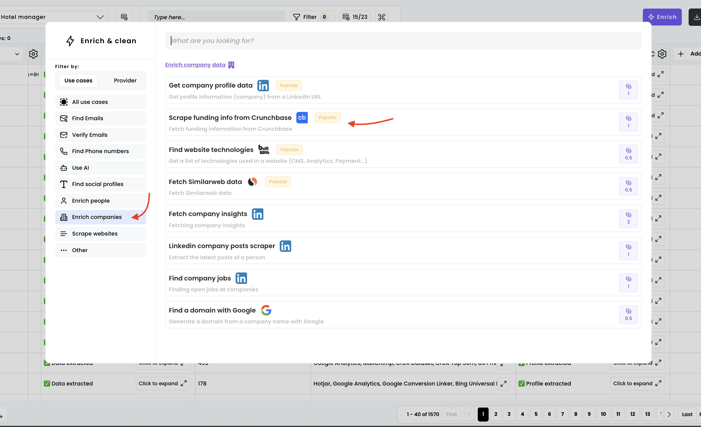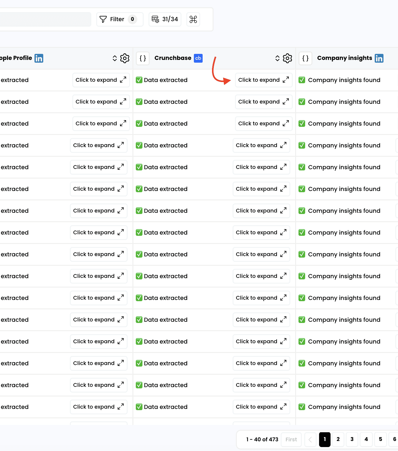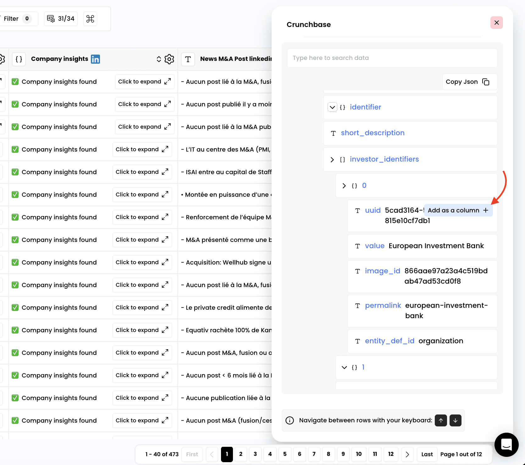 A new column is created automatically. If you click on "Click to expand" you can access the detail of the enrichment