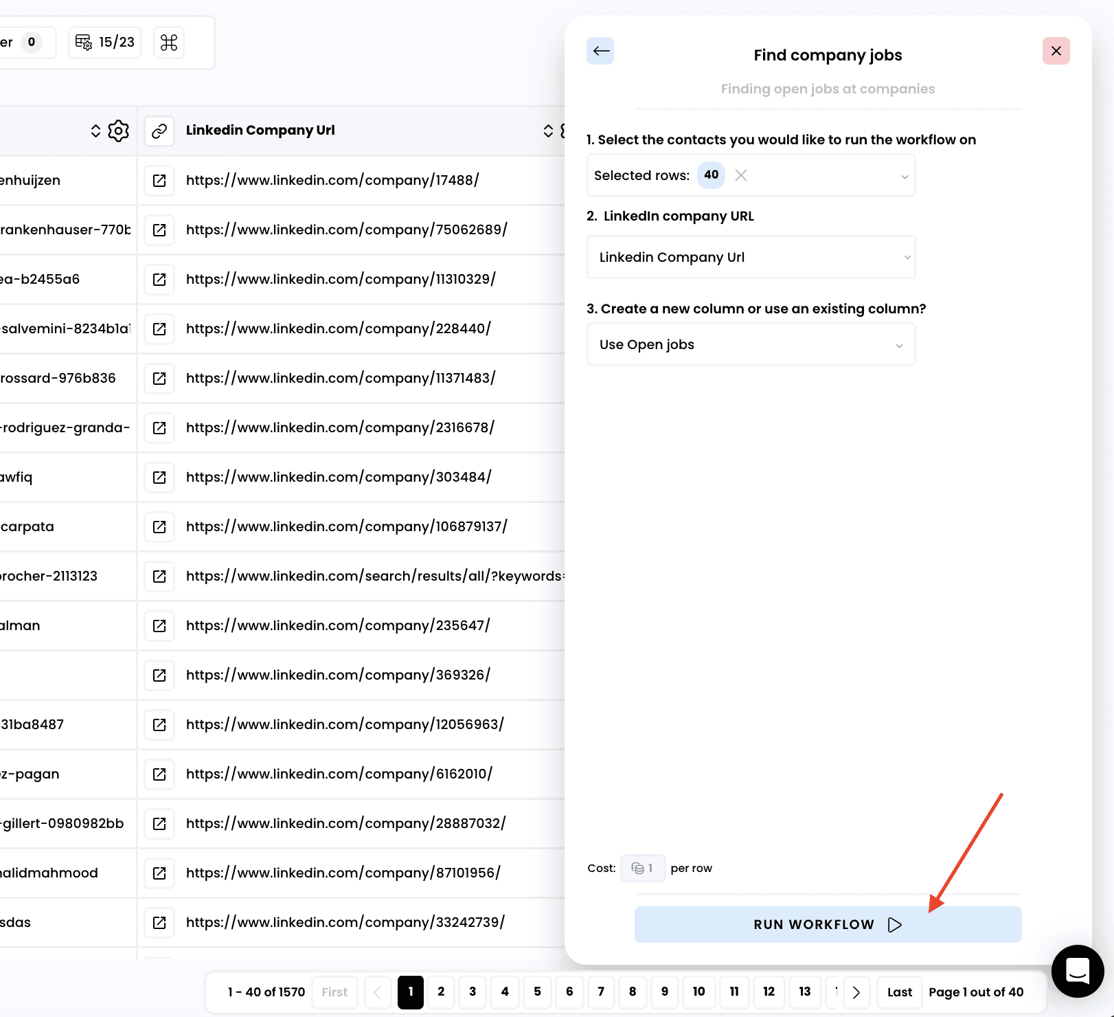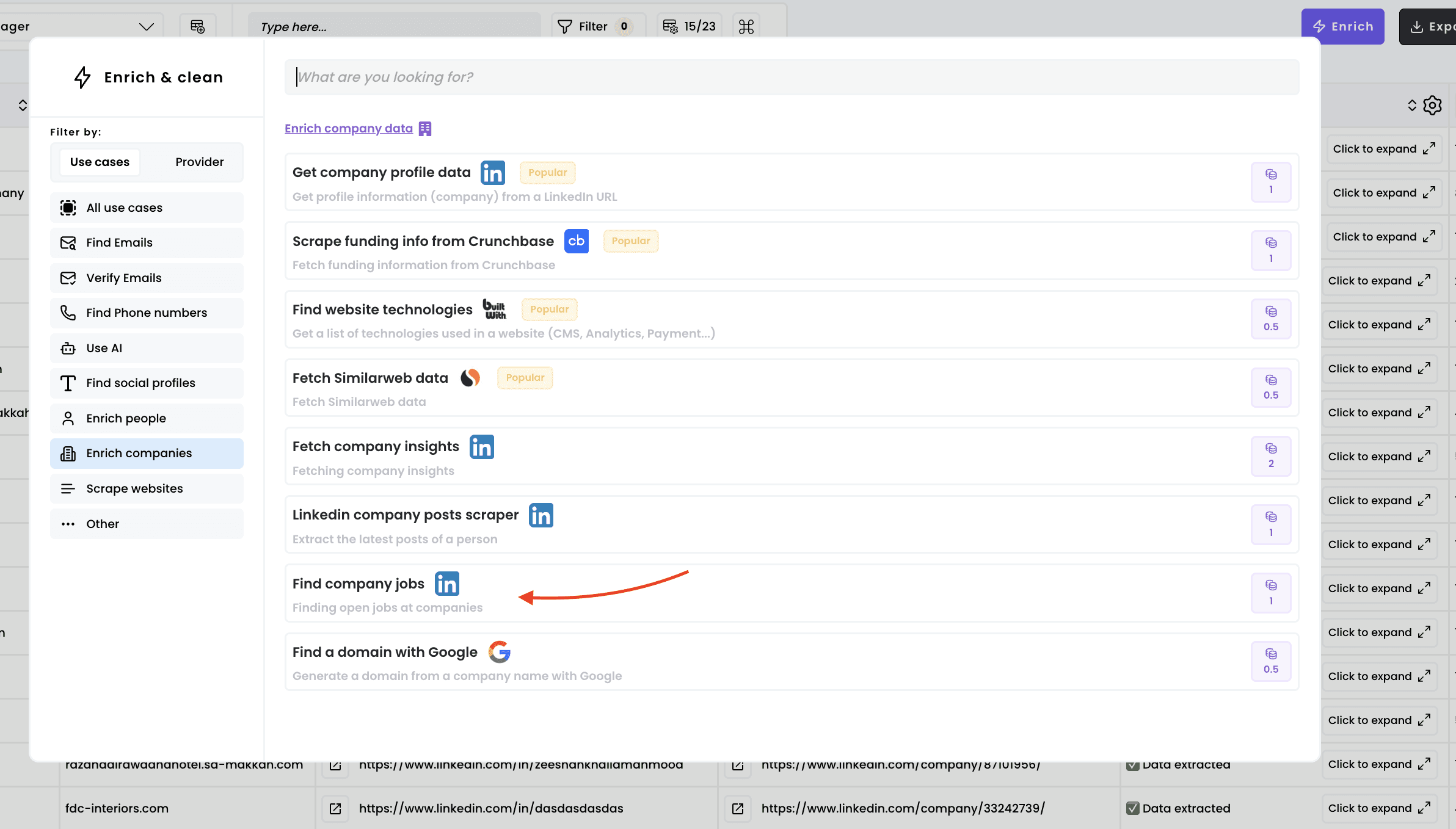 The required input to enrich a company with open roles is a LinkedIn company profile URL