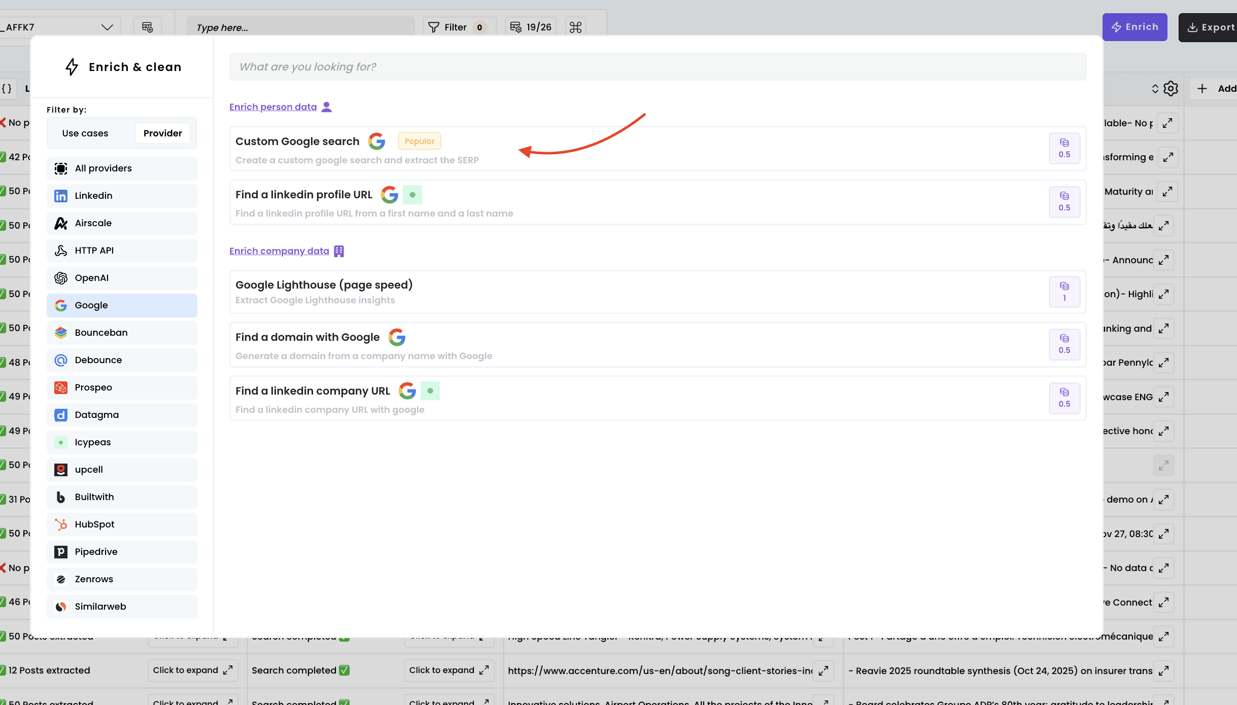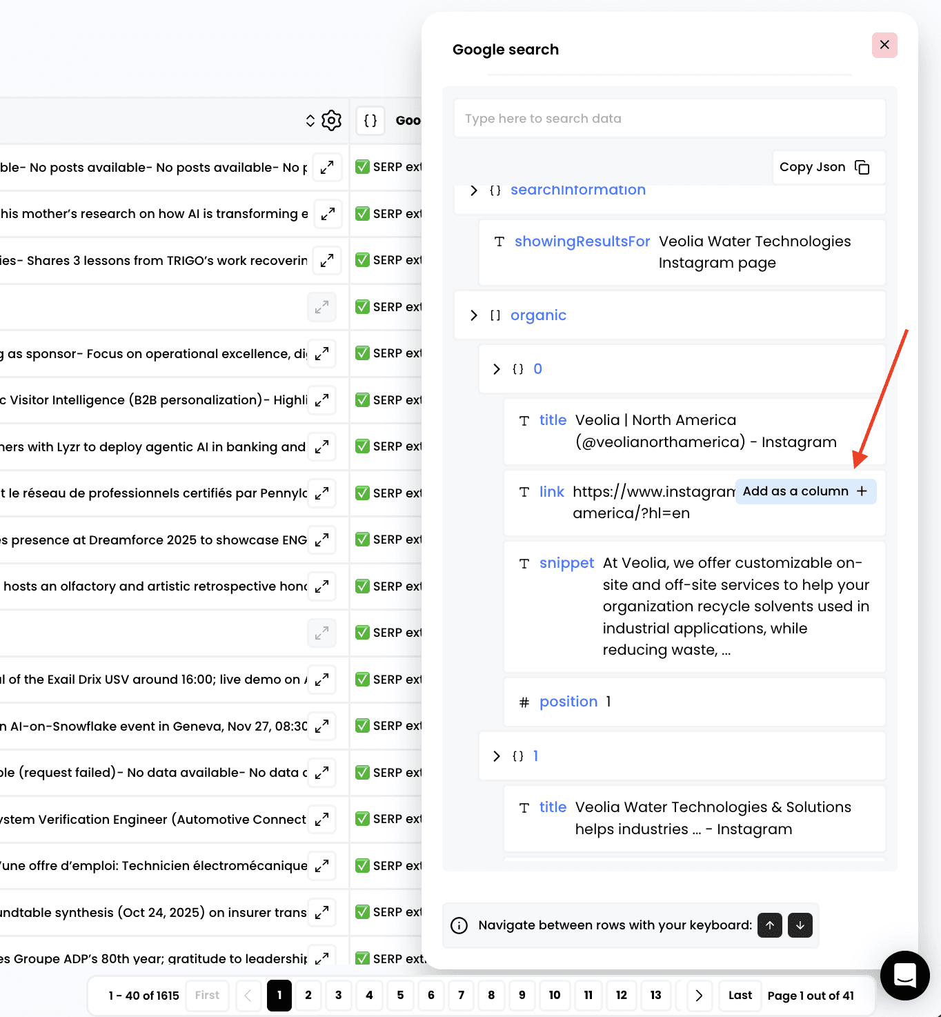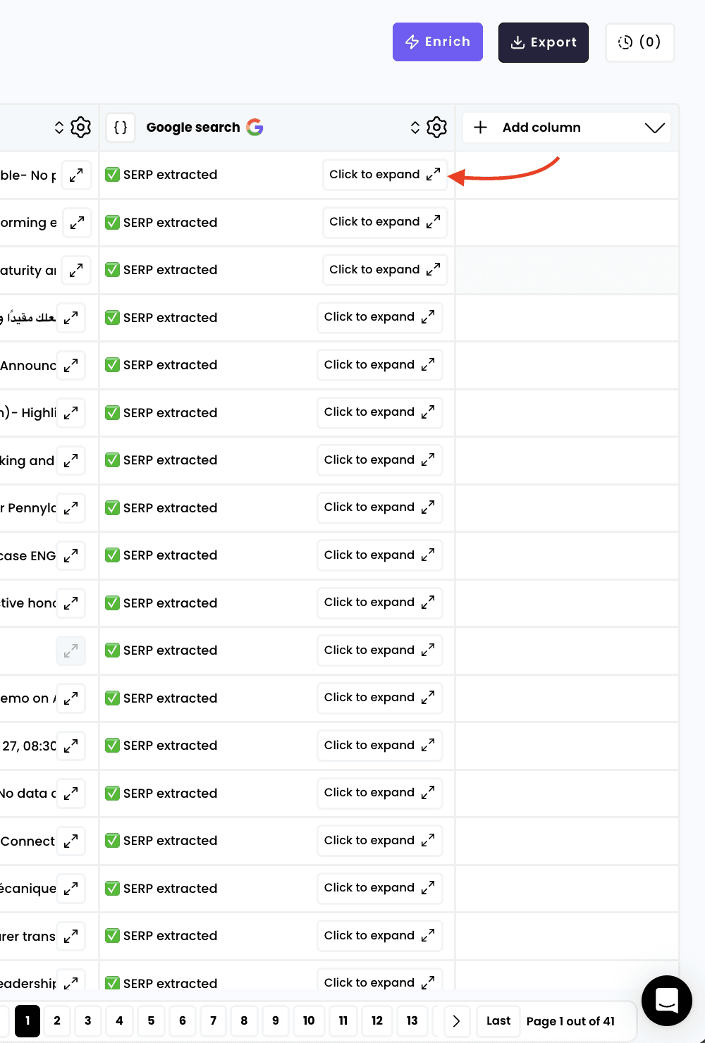 A new column is created automatically. If you click on "Click to expand" you can access the detail of the enrichment