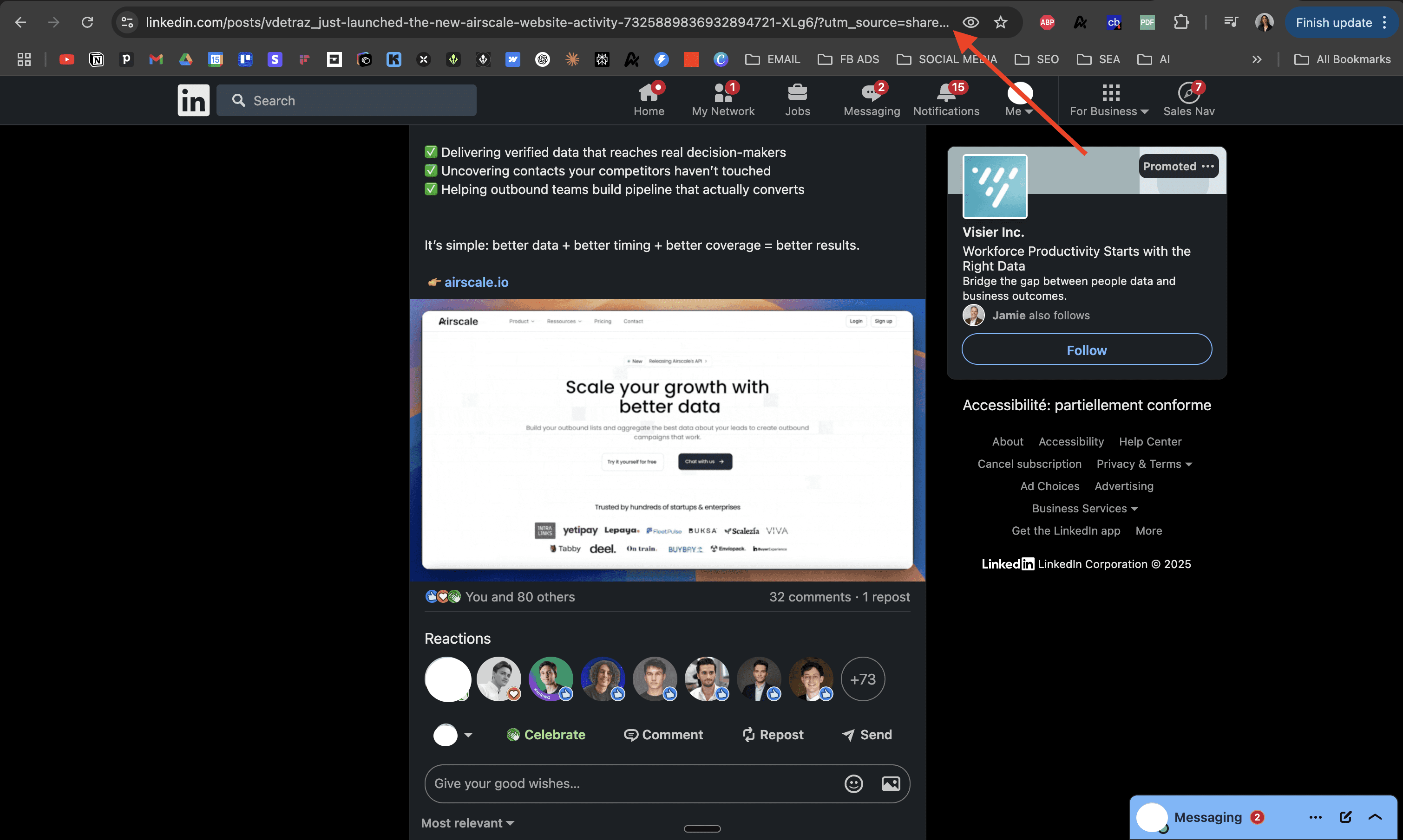 Specific LinkedIn posts with engagement (likes/comments) to target